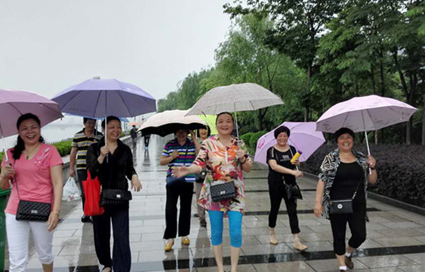 早上9點(diǎn),160余名麗汽退休職工齊聚麗水“外灘”防洪堤,雖然天空淅淅瀝瀝的下著雨,但阻擋不了大家的腳步。老年朋友撐著傘,一路歡聲笑語(yǔ),精神抖擻地沿著防洪堤景觀(guān)帶走了半個(gè)多小時(shí),隨后還參觀(guān)了麗水城市文化標(biāo)志性建筑應(yīng)星樓。