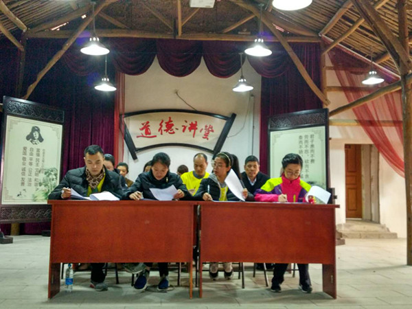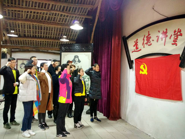 在卻金館導(dǎo)游朱勇華為我們講了“何文淵做知府”的廉潔故事 , 全體黨員向黨旗莊嚴(yán)地舉宣誓,再一次重溫入黨誓詞,黨員進(jìn)行2016年度下半年先鋒考評(píng)表。