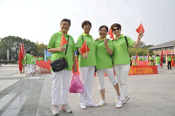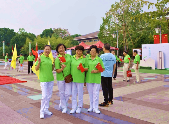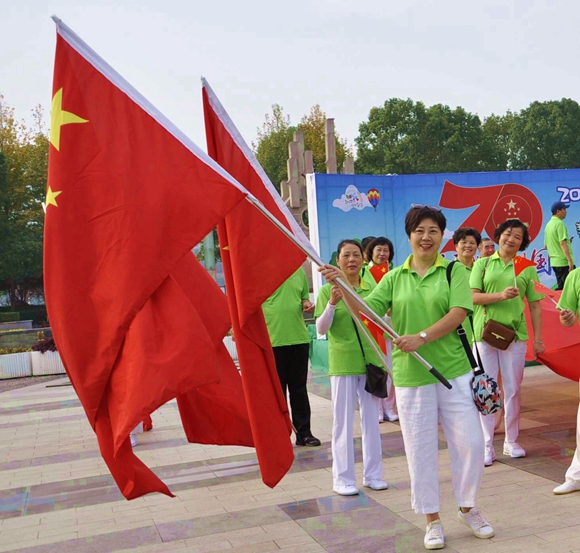 金色的晨曦中,鮮艷的五星紅旗迎風招展,紅旗的映襯下,身為中華兒女的麗汽人笑容綻放、步伐矯健,《我和我的祖國》那熟悉的旋律在防洪堤的上空久久回蕩……