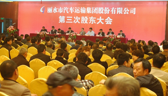 麗水市汽車運(yùn)輸集團(tuán)股份有限公司第三次股東大會(huì)于2012年3月28日在麗水中意大酒店召開。會(huì)議由集團(tuán)公司董事、總經(jīng)理薛和有主持。