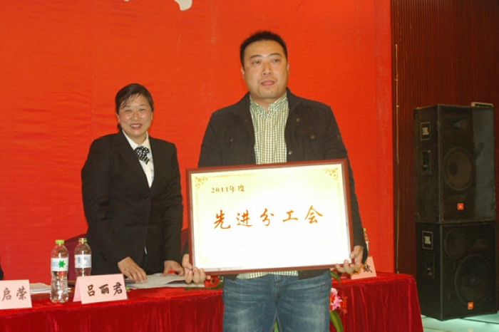 工會(huì)主席呂麗君為先進(jìn)分工會(huì)頒獎(jiǎng)