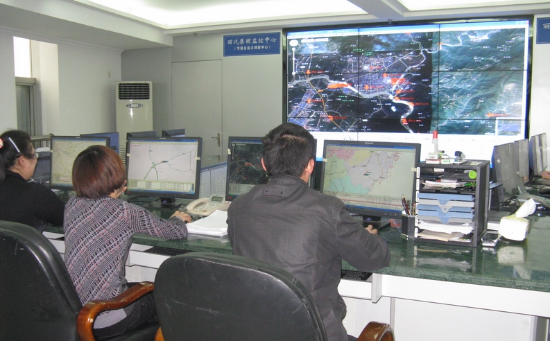 麗汽集團(tuán)的工作人員在GPS系統(tǒng)監(jiān)控室監(jiān)控所屬的180多輛營運(yùn)客運(yùn)車輛運(yùn)行狀況。