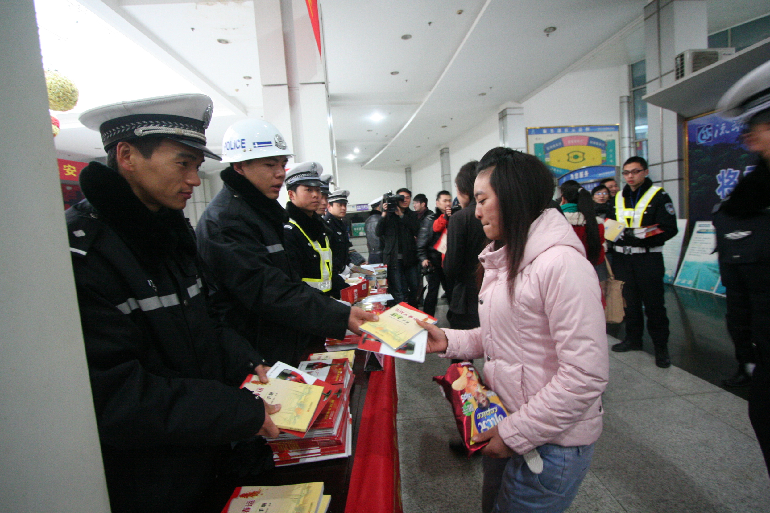 春運(yùn)首日,麗水市交警支隊(duì)、高速交警麗水支隊(duì)、麗水市運(yùn)管處、麗水交通音樂(lè)頻率四家單位聯(lián)合客運(yùn)東、西站在兩站候車廳開(kāi)展春運(yùn)首日暨平安春運(yùn)問(wèn)計(jì)于民宣傳咨詢活動(dòng)?;顒?dòng)現(xiàn)場(chǎng),設(shè)立了交通安全宣傳窗,高速交警進(jìn)行了調(diào)查問(wèn)卷活動(dòng)。四家單位除了通過(guò)派送春節(jié)禮包、新年掛歷、福字等形式送上新年祝福同時(shí),還向旅客發(fā)放了《駕駛?cè)舜哼\(yùn)安全手冊(cè)》、《珍愛(ài)生命 拒絕酒駕》、《平安出行 快樂(lè)駕車》、《新手上路必讀》等宣傳圖冊(cè),向大家倡導(dǎo)“平安春運(yùn),人人有責(zé)”的理念。