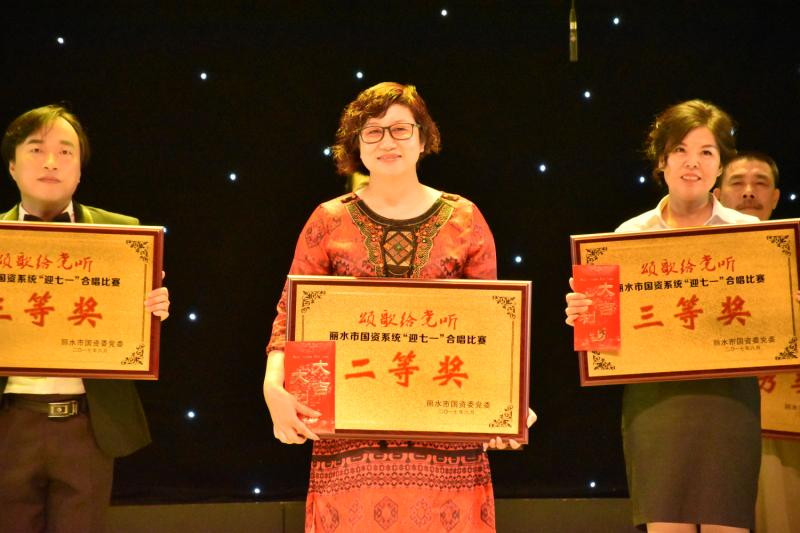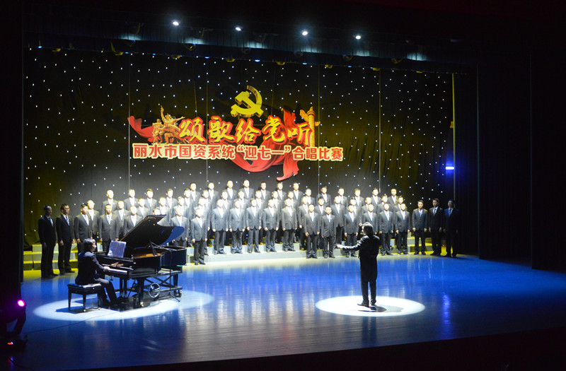 “在我們麗水有著一家80多年歷史的道路運(yùn)輸企業(yè),她從一條羊腸小道、兩部舊車?yán)_了我們秀山麗水的公路運(yùn)輸發(fā)展序幕,歷經(jīng)抗日戰(zhàn)爭(zhēng),解放戰(zhàn)爭(zhēng)到改革開放的洗禮,她一路風(fēng)雨兼程,現(xiàn)如今,她成為了一個(gè)擁有旅游文化、汽車服務(wù)、道路運(yùn)輸、房地產(chǎn)四大產(chǎn)業(yè)板塊并趨的集團(tuán)企業(yè),從無(wú)到有,由弱到強(qiáng)。她始終在綠水青山就是金山銀山的幸福麗水大建設(shè)的康莊大道上拼搏創(chuàng)新,一路前行不息?!?br /> 6月29日晚的蓮城劇場(chǎng)里,麗水市國(guó)資系統(tǒng)組織了一場(chǎng)主題為“頌歌給黨聽”的“迎七一”合唱比賽,在主持人的介紹后,麗汽集團(tuán)合唱團(tuán)以一曲激情高亢的《天路》征服了所有在場(chǎng)觀眾。演員們身著司服上場(chǎng),胸佩黨徽,個(gè)個(gè)精神飽滿。三個(gè)聲部韻律清晰,天籟般的嗓音、蕩氣回腸的演唱,仿佛讓大家置身于壯闊的雪域高原,博得了評(píng)委及現(xiàn)場(chǎng)觀眾的陣陣掌聲。